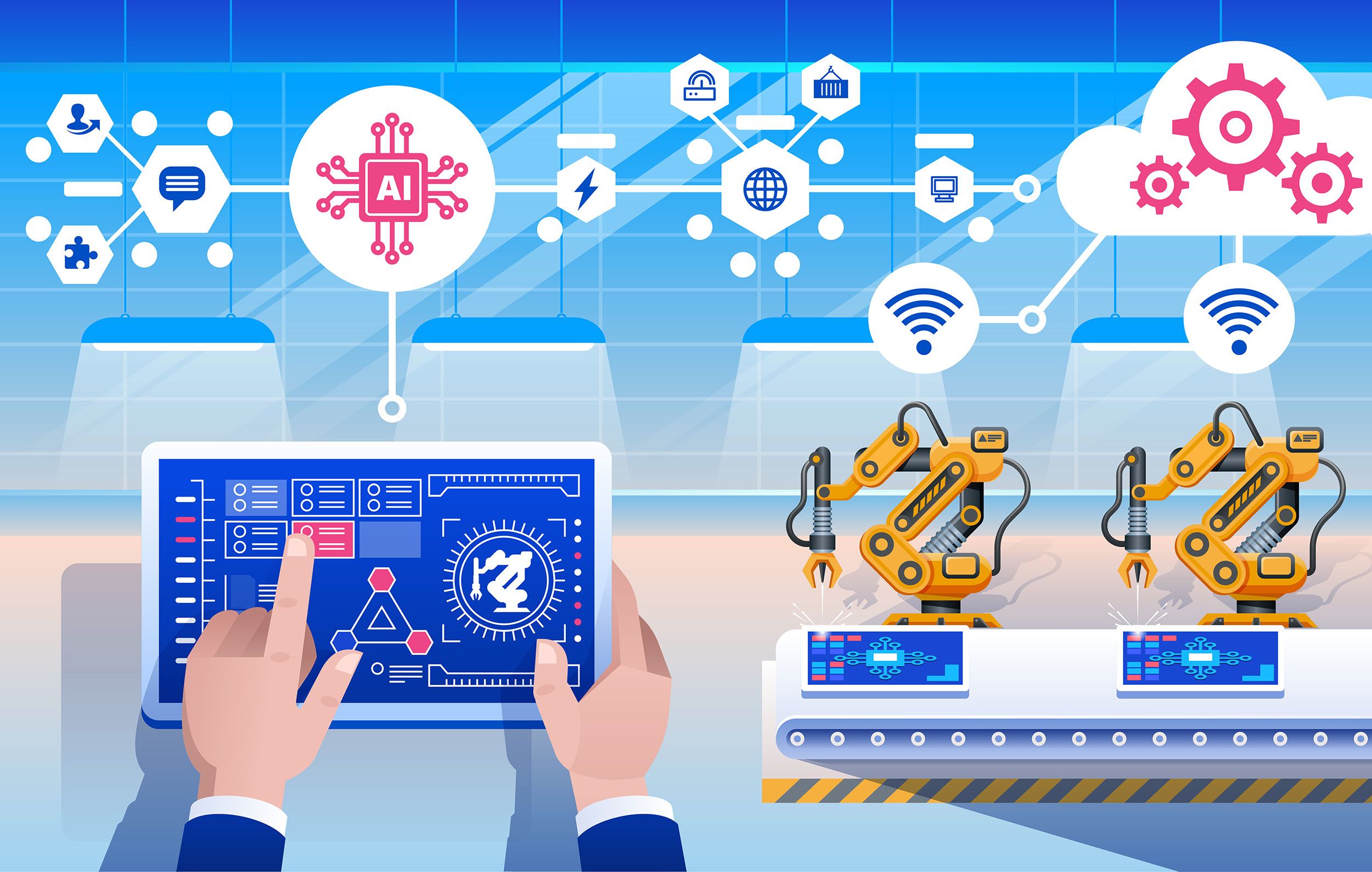 - Automates programmables, tels que des robots collaboratifs destinés au secteur logistique, des solutions de data management, et de coordination de toutes vos solutions informatiques.