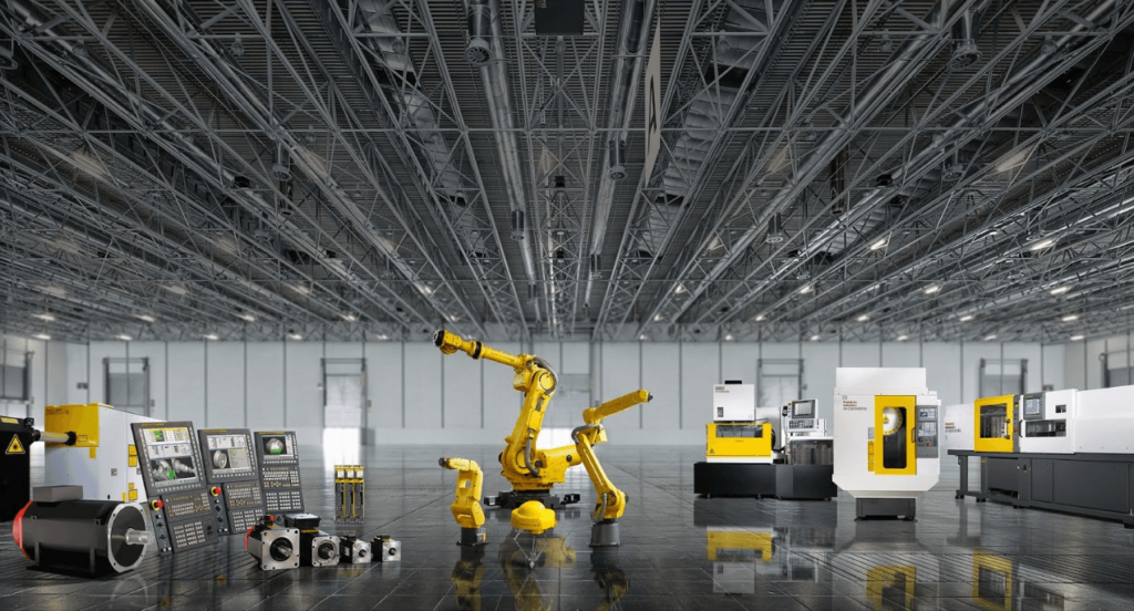 Fanuc est une entreprise située au pied du mont Fuji, près du lac Yamanaka, et couvre presque 2 millions de mètres carrés pour accueillir toute sa production.