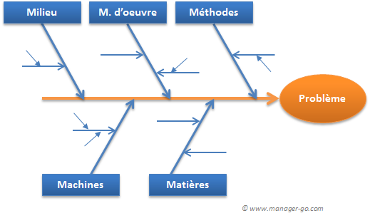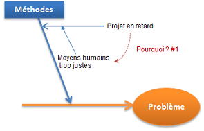 Dans notre exemple précédent, pour la catégorie « Main d’oeuvre », il convient de se poser les questions suivantes : L’augmentation de la quantité de livraisons hors délais est-elle due à mauvaise intervention d’un collaborateur ? Est-elle la conséquence de compétences mal maîtrisée ? Pour la catégorie « Méthodes », on peut se demander s’il s’agit d’une défaillance technique ou d’une erreur de procédure par exemple.
