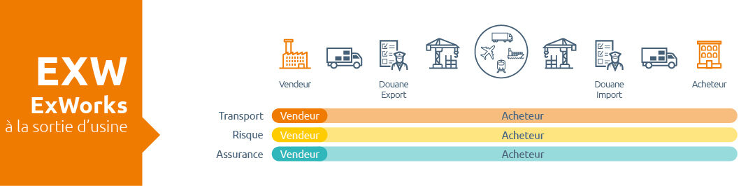 Dans le cadre de l’incoterm EXW, la seule responsabilité du vendeur est d’acheminer la marchandise au point de rendez-vous décidé avec l’acheteur. Celle-ci doit bien sûr être correctement emballée et étiquetée pour un échange dans les meilleures conditions. Le fournisseur n’a aucune autre obligation d’ordre financier ou organisationnel.