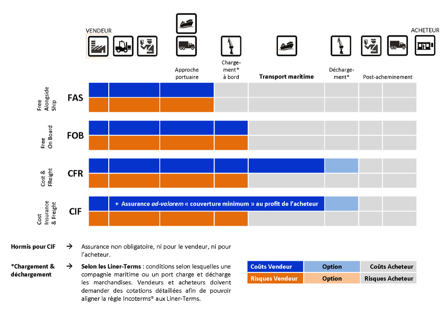Il existe également 4 Incoterms maritimes (ou fluviaux) :